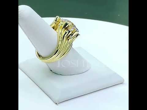 This exquisite engagement ring is uniquely designed to make a statement! The center features a brilliant round cut white main stone. It is surrounded by round cut white stones. Very stylish and sparkling. Perfect for many occasions. Total weight is approximately 8 carats. The ring is made of 925 silver throughout, with thick gold plating, which makes the luster last longer compared to other single layer plating. The style is personalized and stylish, bringing more possibilities for your fashion collocation.