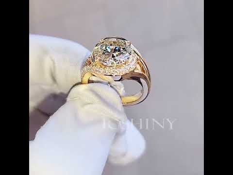 Elegant and simple in design, this classic engagement ring features a brilliant round cut white center stone and round cut white gemstone pavé on the band arm for exquisite craftsmanship, perfect for everyday wear! Total weight is approximately 8 carats.The ring is made of 925 silver throughout, with thick gold plating, which makes the luster last longer compared to other single layer plating. The style is exquisite and simple, bringing more possibilities for your fashion collocation.
