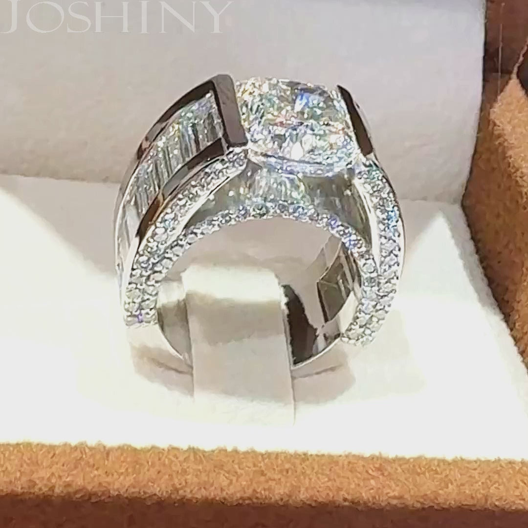 Fantastic 6 ctw Cushion & Baguette & Round Cut White Gemstone Gorgeous Engagement Ring -JOSHINY