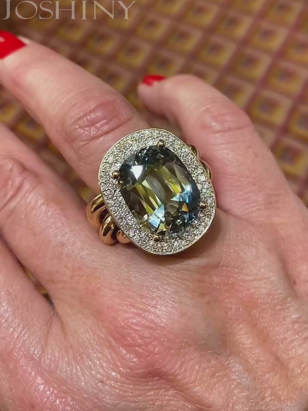 This is a show-stopping, must-have cocktail ring for fashionistas! The center features a unique cushion cut olive green main stone, which is pave set with brilliant round cut white stones at the base. The gold-tone chain ring arm is cool and stylish! Perfect to wear with many occasions. Total weight is approximately 12 carats.The ring is made of 925 silver throughout, with thick gold plating, which makes the luster last longer compared to other single layer plating. The style is personalized and stylish, bringing more possibilities for your fashion collocation.