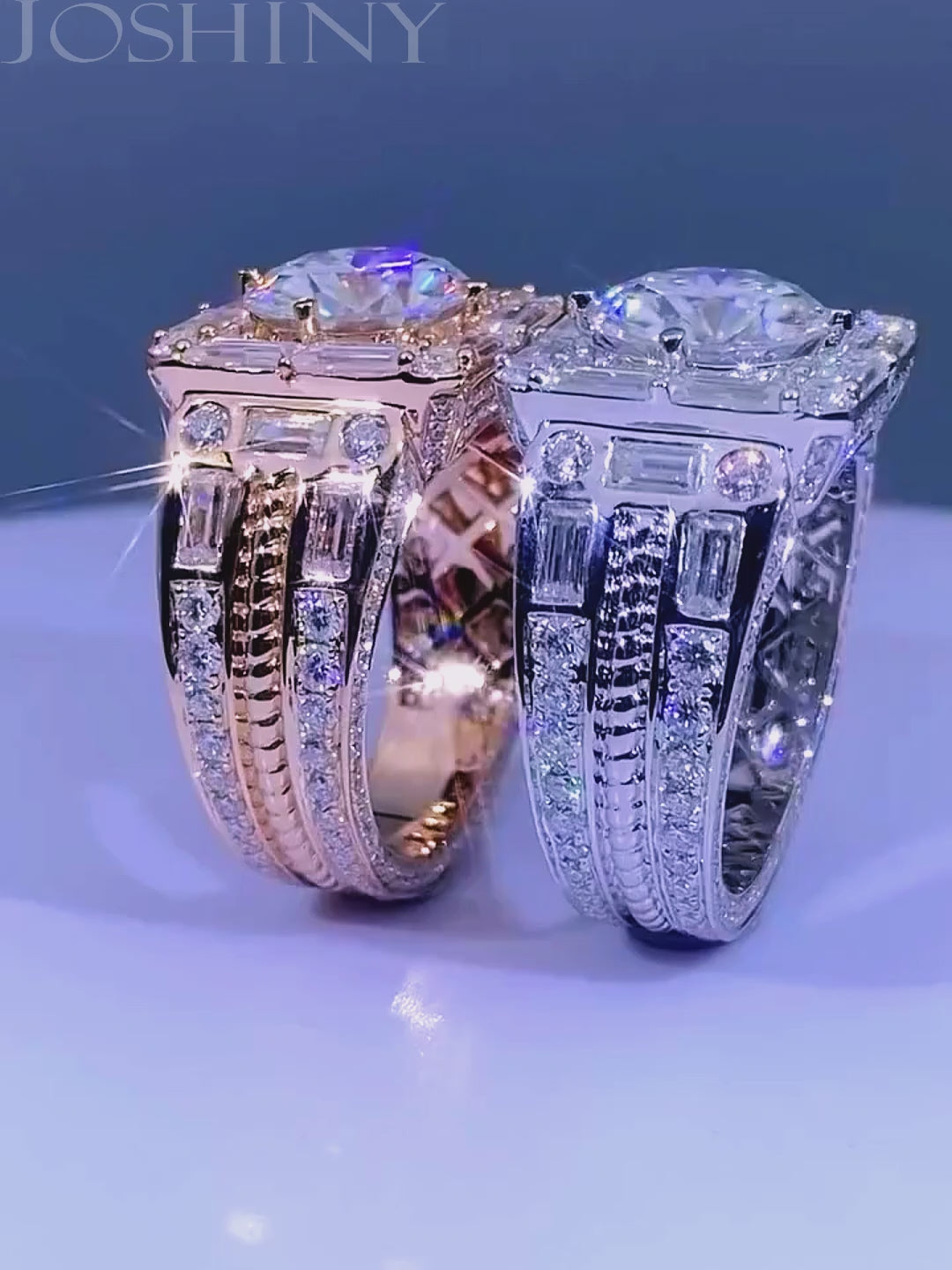 Gorgeous 10 ctw Round & Baguette Cut White Gemstone Engagement Ring for Men and Women -JOSHINY