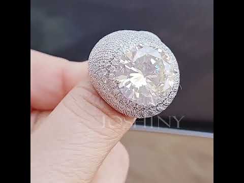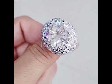 This ring is gorgeous and striking as an engagement ring! The center features a brilliant round cut white main stone. The arms are pave set with round cut white stones. Comfortable to wear and suitable for many occasions. Total weight is approximately 10 carats. The ring is made of 925 silver throughout, with thick gold plating, which makes the luster last longer compared to other single layer plating. The style is personalized and gorgeous, bringing more possibilities for your fashion collocation.