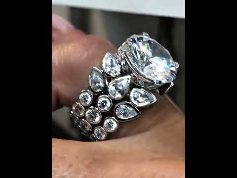 This is a stunning ring! It can be worn by both men and women. The center features a brilliant round cut white main stone. The ring arms are set with a combination of pear and round cut white stones. The devil's eye at the bottom of the ring is stunning and unique! Total weight is approximately 12 carats. The ring is made of 925 silver throughout, with thick gold plating, which makes the luster last longer compared to other single layer plating. The style is personalized and gorgeous, bringing more possibilities for your fashion collocation.