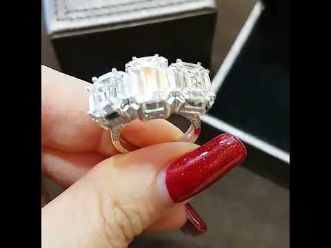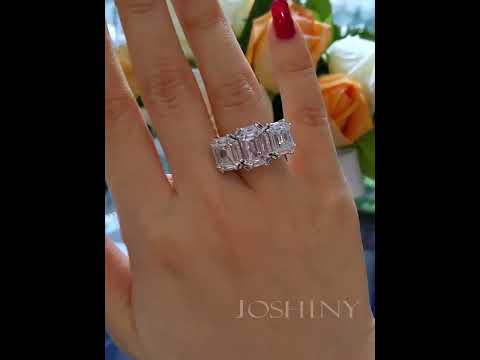 Gorgeous 14 ctw Emerald Cut White Gemstone Three Stone Engagement Ring -JOSHINY