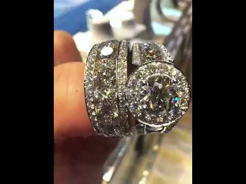 This is a gorgeous 2-piece engagement ring set. Both the main and secondary rings are set with a combination of brilliant round cut white stones of varying sizes. The craftsmanship is exquisitely detailed and sparkling. They can be worn separately and individually, doubling the sparkle when worn together! Total weight is approximately 16 carats. The ring is made of 925 silver throughout and plated with thick gold, which makes the luster more lasting compared to other single layer plating. Bring more possibilities for your fashion collocation.