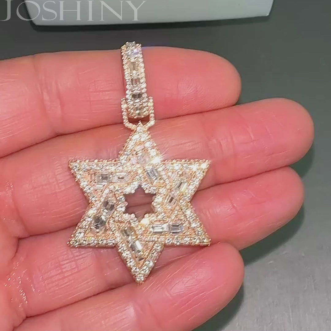 Gorgeous 2 ctw Baguette & Round Cut White Gemstone Pavé Pentagram Pendant -JOSHINY