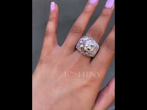 This gorgeous ring can be worn by both men and women. The design is classic and minimalist, and the craftsmanship is superb and sparkling. The center features a brilliant round cut gem-colored main stone. The ring arms are fully set with baguette cut white stones. Total weight is approximately 20 carats. The ring is made of 925 silver throughout, with thick gold plating, which makes the luster last longer compared to other single layer plating. The style is gorgeousd and classic, bringing more possibilities for your fashion collocation.