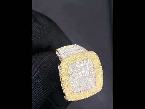 This gorgeous ring sparkles at every angle. The design is classic and simple, the craftsmanship is exquisite and delicate, and it is comfortable to wear and suitable for many occasions. Pavéd with brilliant round cut white stones. Can be worn by ladies as well. Total weight is approximately 3 carats.The ring is made of 925 silver throughout, with thick gold plating, which makes the luster last longer compared to other single layer plating. The style is gorgeous and simple, bringing more possibilities for your fashion collocation.