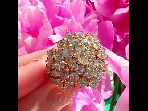This gorgeous ring is a total stunner! Set in a brilliant multi-cut white gemstone cluster. The gold colored ring arms look delicate and elegant. Perfect to wear with many occasions. Total weight is approximately 4 carats.The ring is made of 925 silver throughout, with thick gold plating, which makes the luster last longer compared to other single layer plating. The style is gorgeous and exquisite, bringing more possibilities for your fashion collocation.