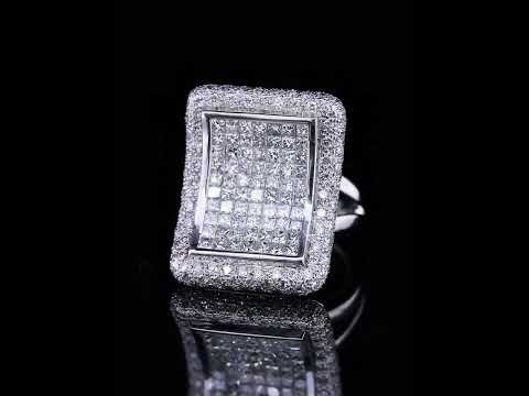 This simple design square ring can be worn by both men and women. Pavéd with brilliant square and round cut white stones. The craftsmanship is exquisitely sparkling and comfortable to wear, making it perfect for everyday wear. Total weight is approximately 4 carats. The ring is made of 925 silver throughout, with thick gold plating, which makes the luster last longer compared to other single layer plating. The style is gorgeous and simple, bringing more possibilities for your fashion collocation.