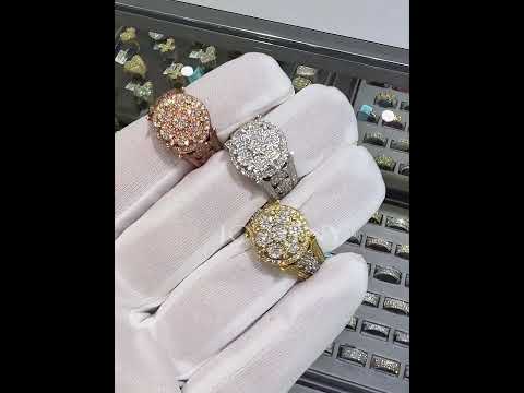 This is a stylish and gorgeous design ring that can be worn by both men and women. It is pave set with brilliant round cut white stones of varying sizes. The craftsmanship is exquisite and sparkling, making it suitable for many occasions. Total weight is approximately 5 carats.The ring is made of 925 silver throughout, with thick gold plating, which makes the luster last longer compared to other single layer plating. The style is gorgeous and stylish, bringing more possibilities for your fashion collocation.