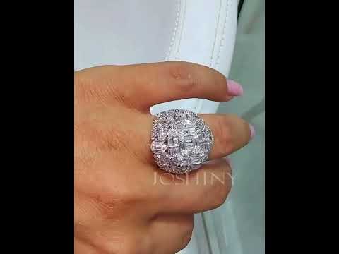 Gorgeous 6 ctw Baguette & Round Cut White Gemstone Cluster Cocktail Ring -JOSHINY