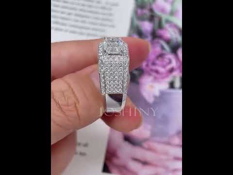 This gorgeous ring can be worn by both men and women. It is suitable for many occasions to match. The center features a brilliant emerald cut white stone. The ring arms are pave set with round cut white stones. Total weight is approximately 6 carats. The ring is made of 925 silver throughout, with thick gold plating, which makes the luster last longer compared to other single layer plating. The style is personalized and gorgeous, bringing more possibilities for your fashion collocation.