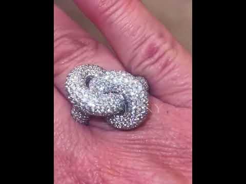 This unique rope knot ring has an elegant and stylish design. Featuring brilliant round cut white gemstones set full length. The craftsmanship is exquisite and sparkling! Comfortable to wear and suitable for many occasions. Total weight is approximately 6 carats. The ring is made of 925 silver throughout, with thick gold plating, which makes the luster last longer compared to other single layer plating. The style is personalized and elegant, bringing more possibilities for your fashion collocation.