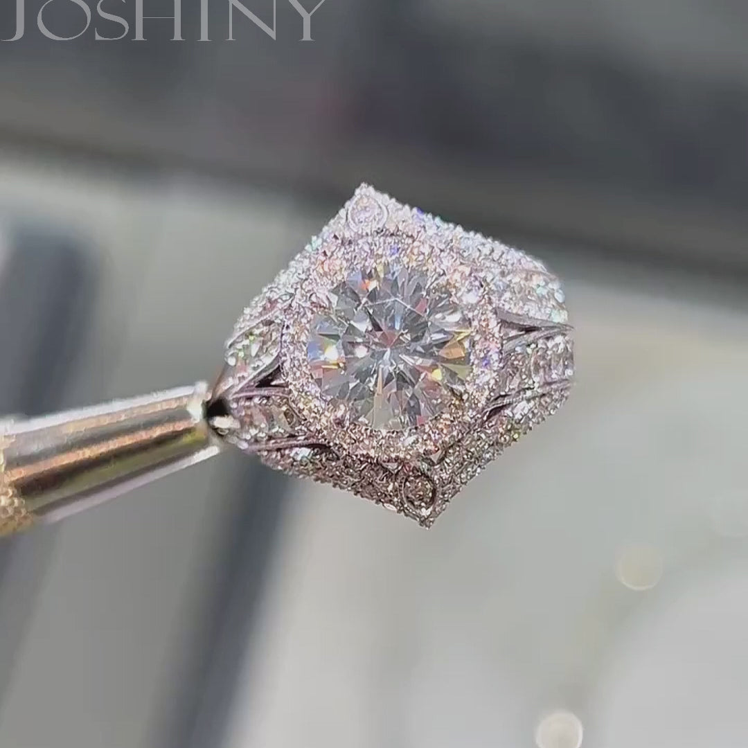 Gorgeous 6 ctw Round Cut White Gemstone Pavé Engagement Ring -JOSHINY