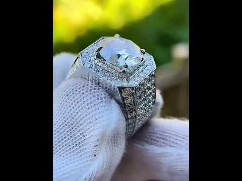 This gorgeous ring can be worn by both men and women. It is suitable for many occasions to match. The center features a brilliant round cut white stone. The ring arms are pave set with round cut white stones. Total weight is approximately 7 carats. The ring is made of 925 silver throughout, with thick gold plating, which makes the luster last longer compared to other single layer plating. The style is personalized and gorgeous, bringing more possibilities for your fashion collocation.
