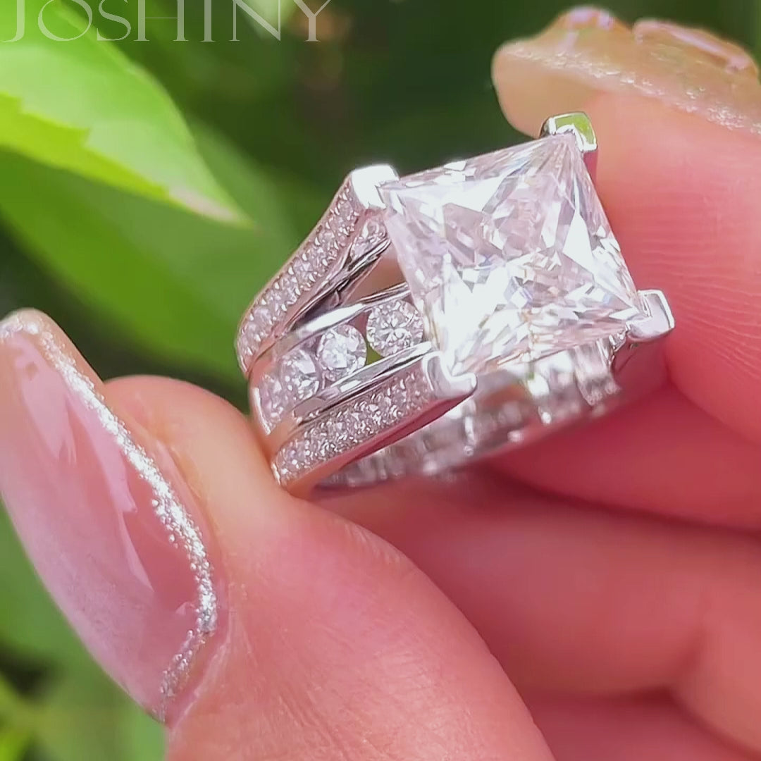 Gorgeous 8 ctw Princess Square Cut White Gemstone Engagement Ring -JOSHINY