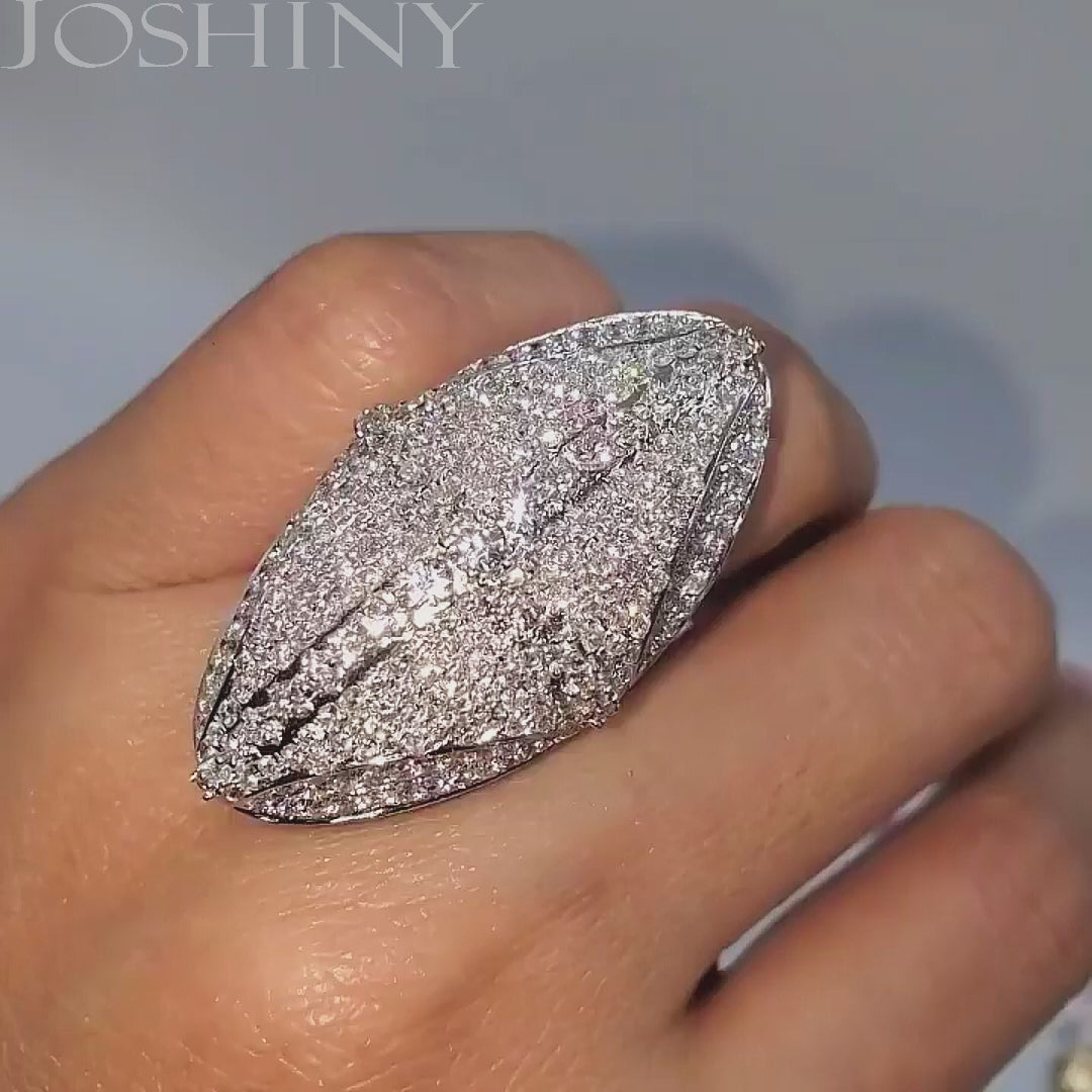 This is a unique and gorgeous design ring that can be worn by both men and women. It is pave set with brilliant round cut white stones of varying sizes. The unique shape gives this ring a distinctive look! The entire ring is exquisitely crafted and sparkling! Perfect to wear with many occasions. Total weight is approximately 8 carats.The ring is made of 925 silver throughout, with thick gold plating, which makes the luster last longer compared to other single layer plating. The style is personalized and gorgeous, bringing more possibilities for your fashion collocation.