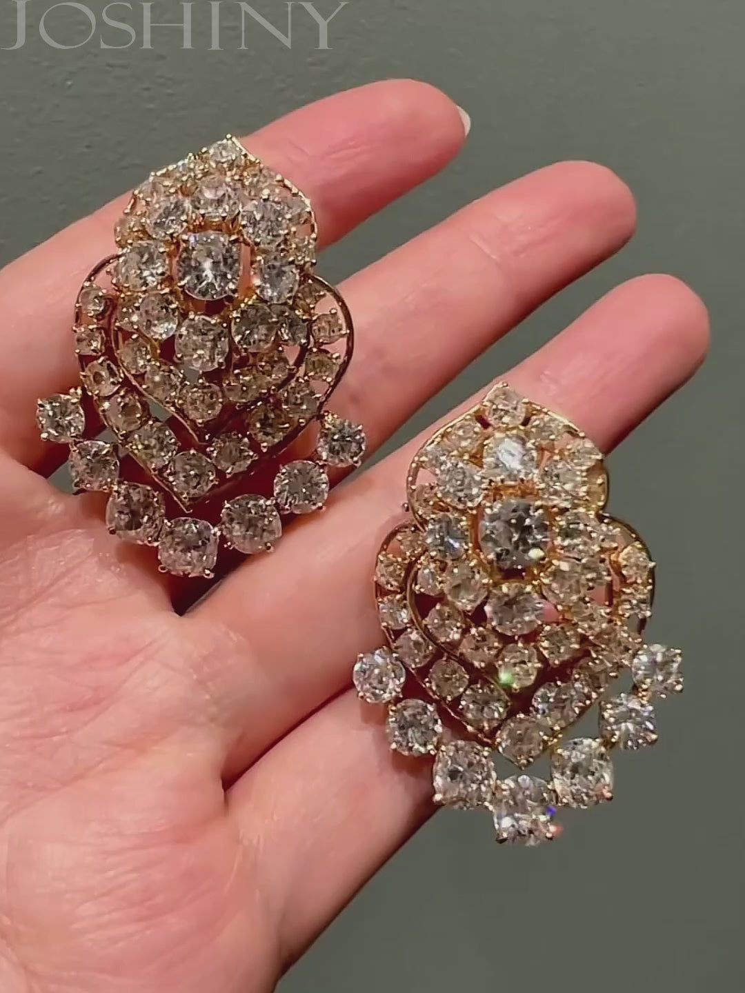 These gorgeous vintage chandelier earrings will make you the talk of the party! Set with a combination of round cut white stones of varying sizes. The high quality craftsmanship and vintage design make these earrings exquisite and elegant! Total weight is approximately 9 carats. The earrings is made of 925 silver throughout, with thick gold plating, which makes the luster last longer compared to other single layer plating. The style is personalized and gorgeous, bringing more possibilities for your fashion collocation.