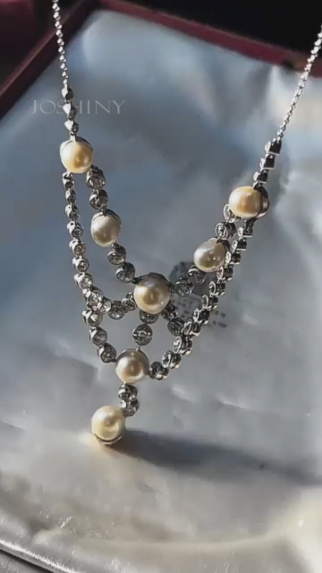 Gorgeous double-layered pearl and gemstone necklace-JOSHINY