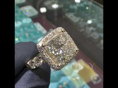Our latest engagement ring design features a square halo with a 3.5CT princess cut mega stone in the centre.
