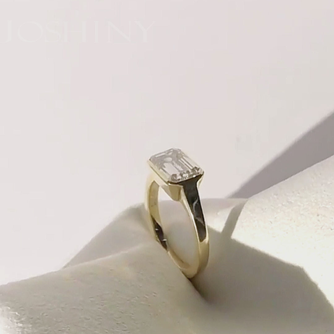 Minimalist Design 2 Carat Emerald Cut White Gemstone Engagement Ring