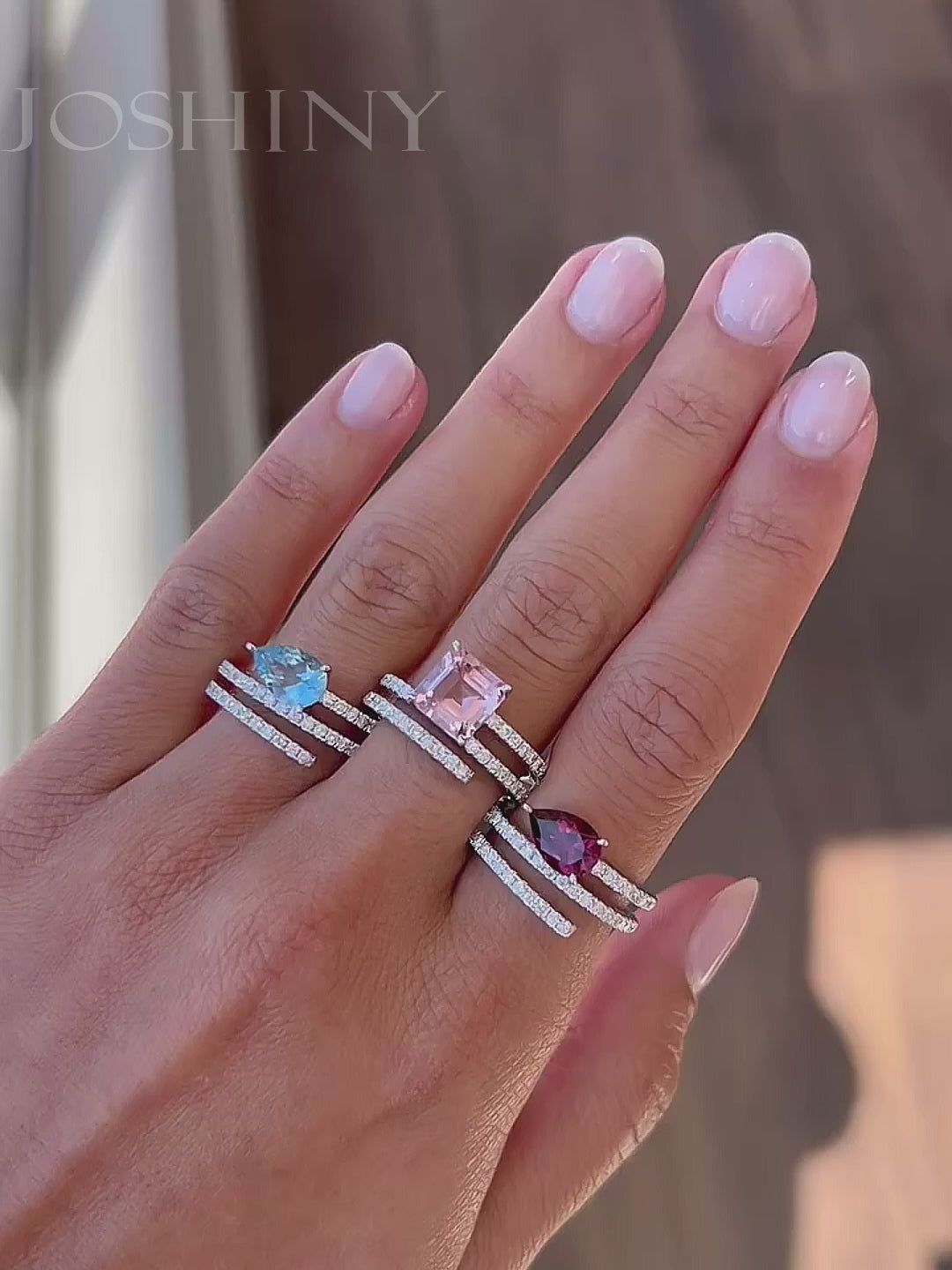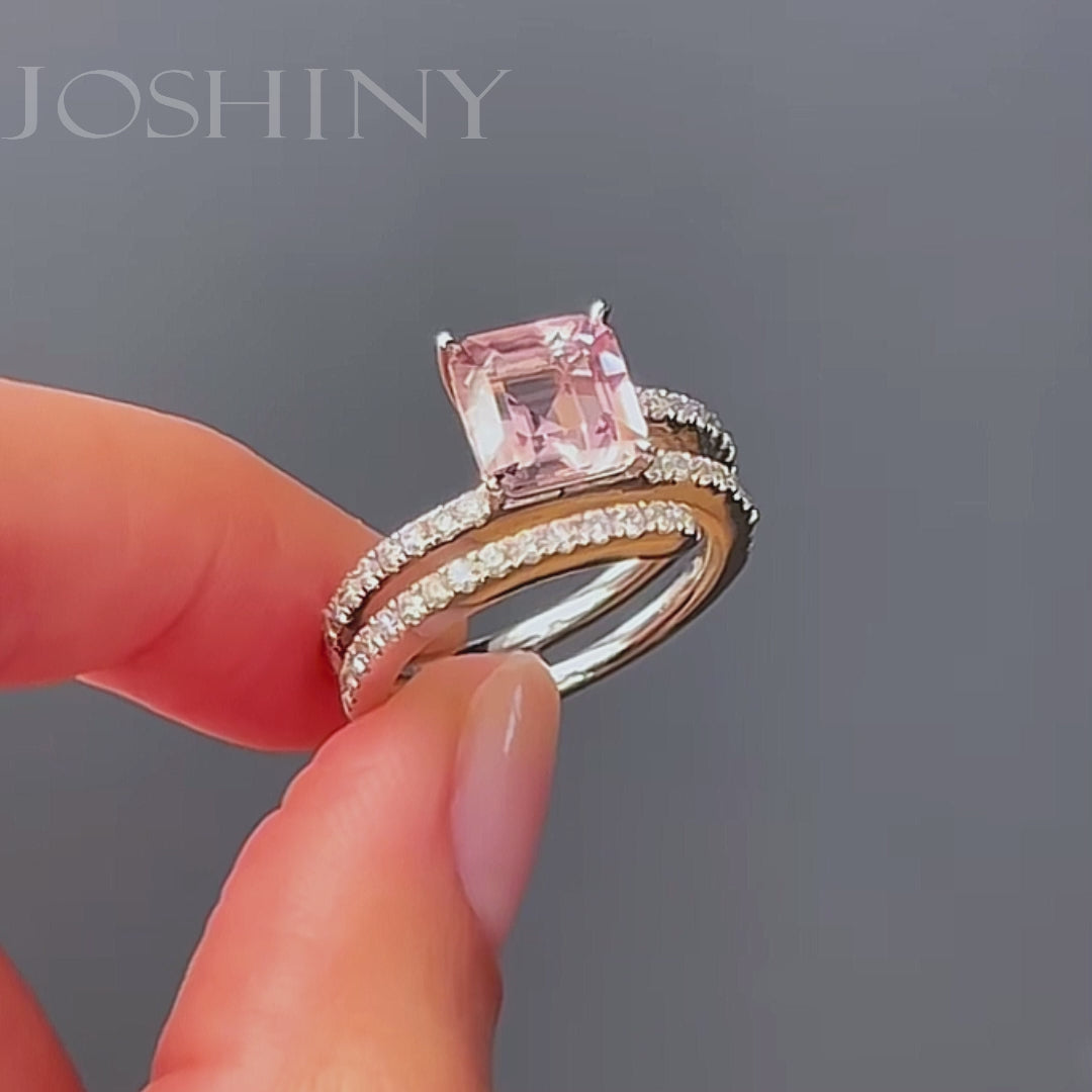 Modern Spiral 3ctw Asscher Cut Pink Gemstone Engagement Ring -JOSHINY