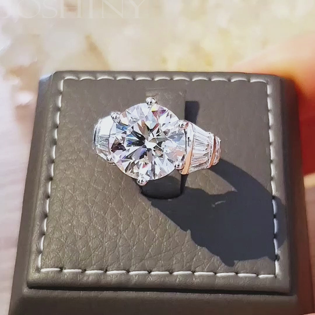 Noble 10 ctw Round & Trapezoidal Cut White Gemstone Engagement Ring for Women -JOSHINY