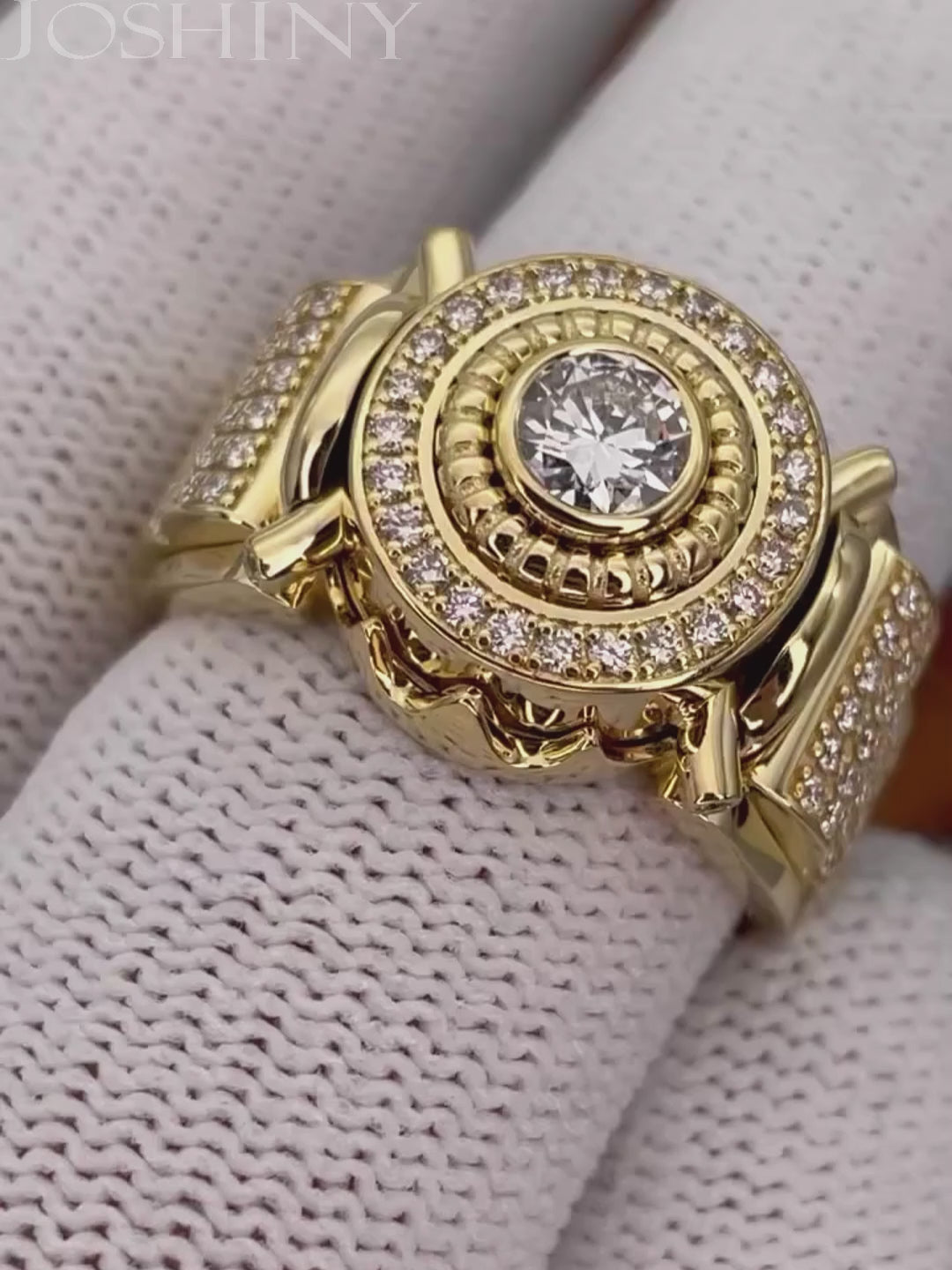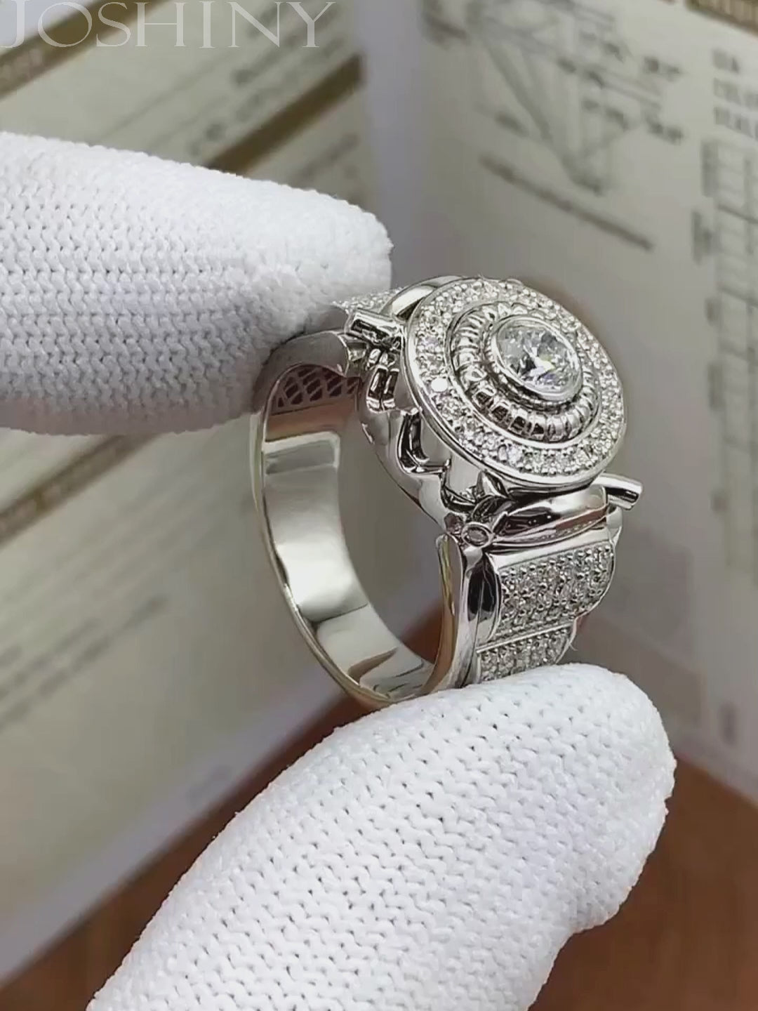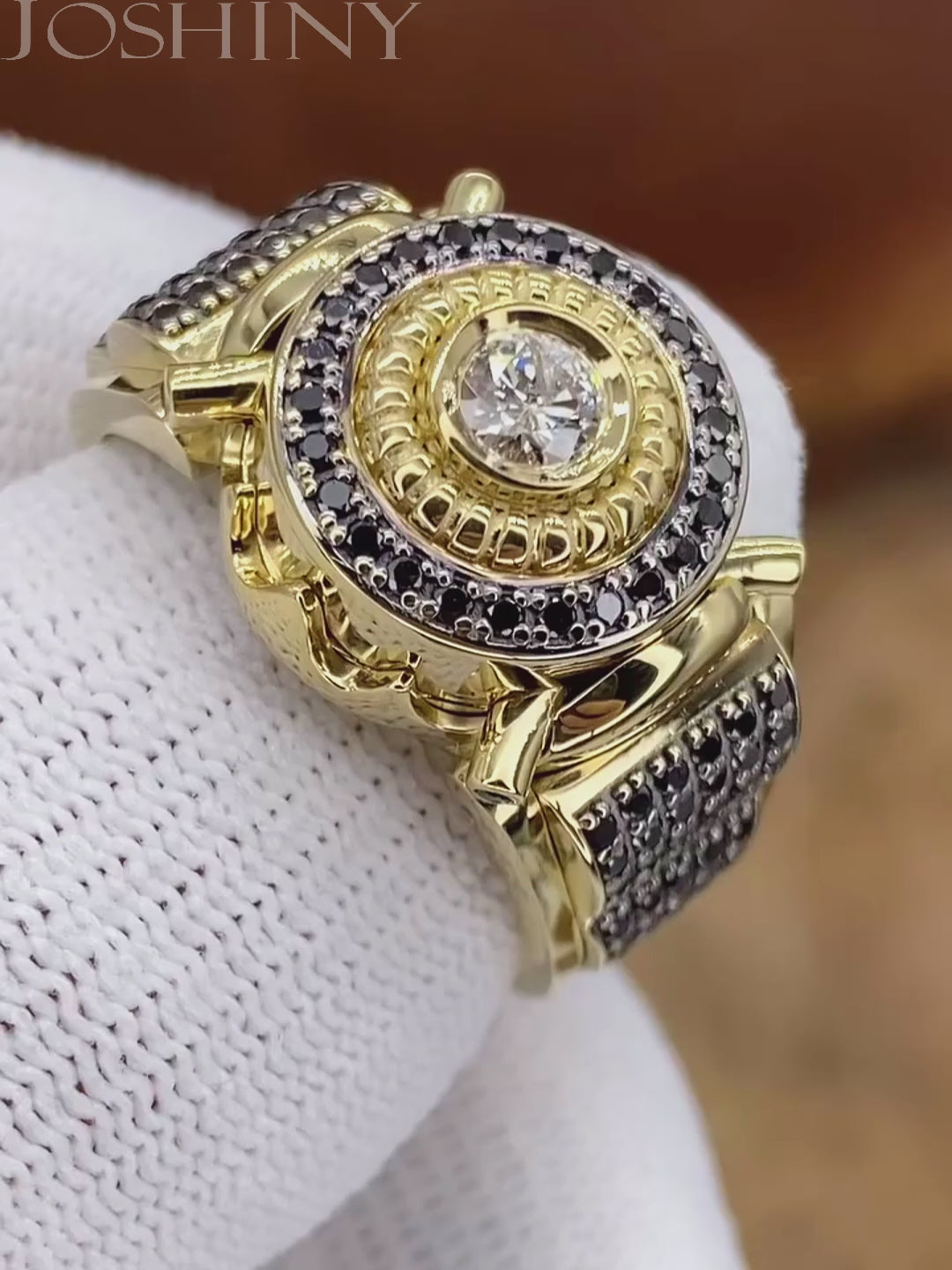 This is a stunning ring with a unique and noble design! It can be worn by both men and women. Set with a combination of brilliant round cut white and black stones. The craftsmanship is exquisitely detailed and sparkling! We offer three colorways to choose from. Total weight is approximately 4 carats.The ring is made of 925 silver throughout, with thick gold plating, which makes the luster last longer compared to other single layer plating. The style is personalized and noble, bringing more possibilities for your fashion collocation.