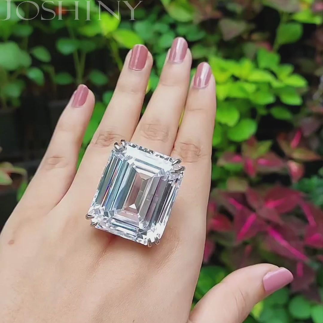 Outstanding 15 ctw Emerald Cut White Gemstone Solitaire Ring -JOSHINY