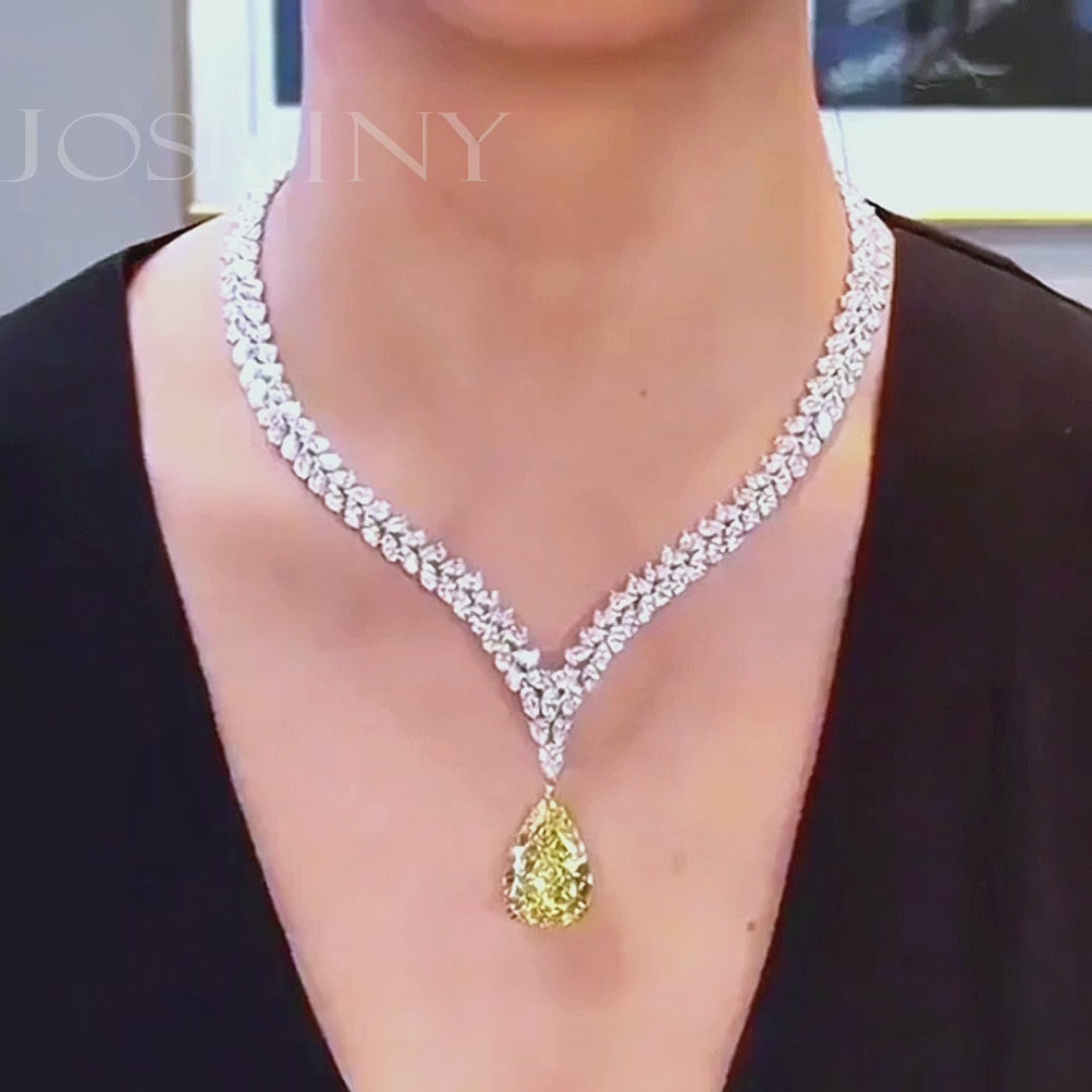 26ctw Pear Cut Elegant Pave Set Yellow Gemstone Necklace