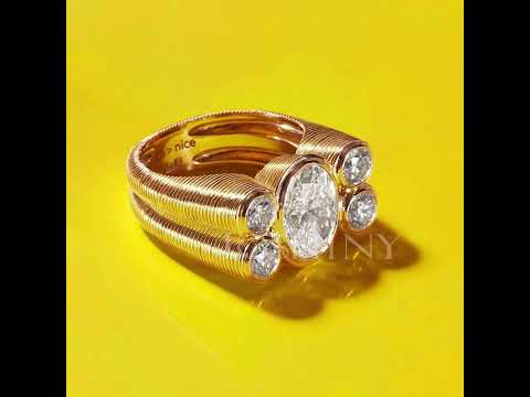 Precious 5ct Oval Cut 5 Stone Yellow Gold Ring -JOSHINY