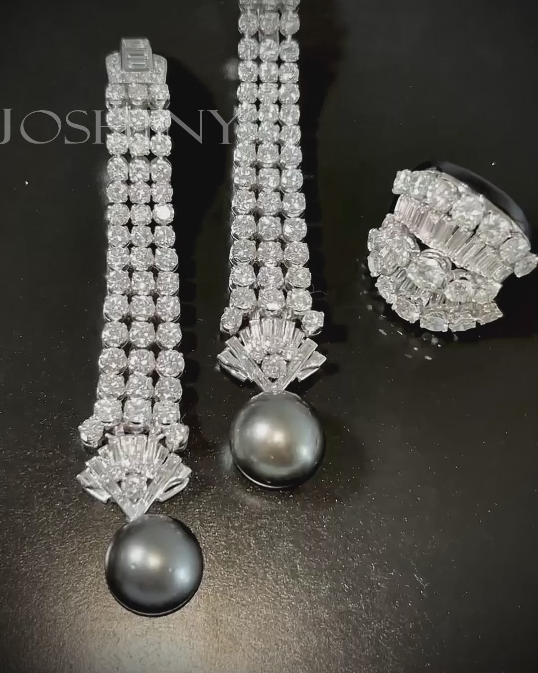 Round and baguette cut gemstone ring and earrings-JOSHINY