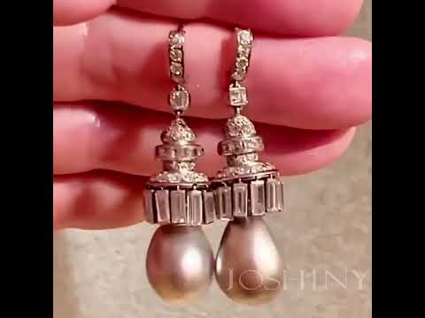 Seductive 8.0ctw pearl gemstone vintage style dangle earrings -JOSHINY