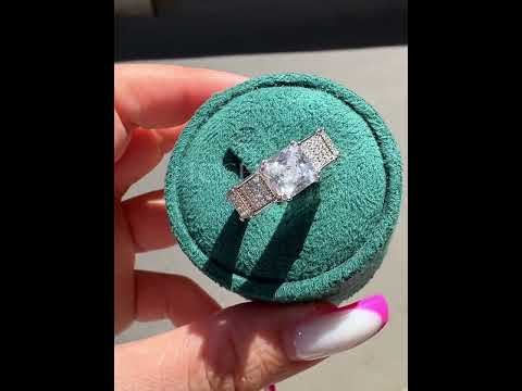 This is an engagement ring that can be worn by both men and women. The bamboo shape design is elegant and simple. The craftsmanship is exquisite and delicate. The center features a brilliant square cut white main stone and the arms are pave set with round cut white stones. Perfect for everyday wear. Total weight is approximately 3 carats. The ring is made of 925 silver throughout, with thick gold plating, which makes the luster last longer compared to other single layer plating. The style is elegant and simple, bringing more possibilities for your fashion collocation.