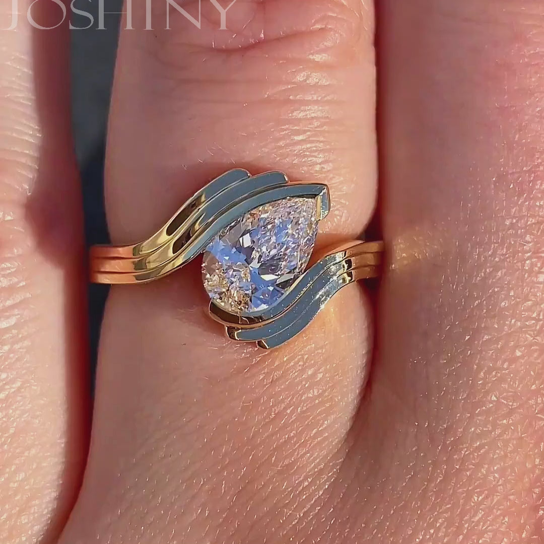 Simple 4 ctw Pear Cut White Gemstone Engagement Ring -JOSHINY