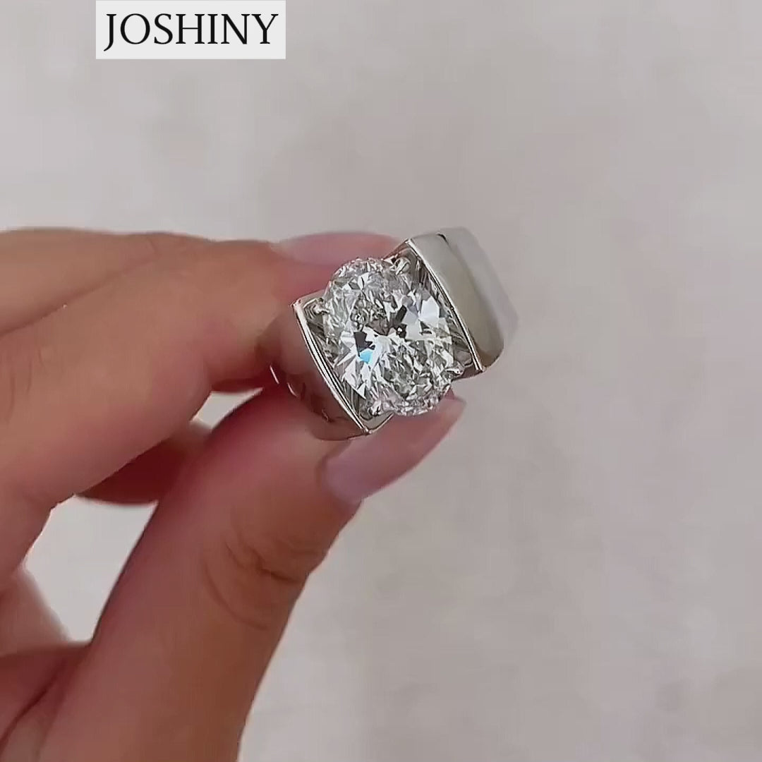 This is an engagement ring with a simple and stylish design that can be worn by both men and women. The center features a sparkling oval cut white main stone. The entire ring is exquisitely crafted and comfortable to wear! Perfect for everyday matching wear. Total weight is approximately 5 carats.The ring is made of 925 silver throughout, with thick gold plating, which makes the luster last longer compared to other single layer plating. The style is stylish and simple, bringing more possibilities for your fashion collocation.