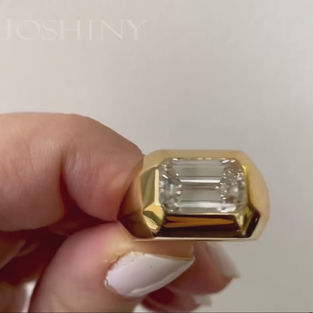 This is a minimalist design engagement ring for men and women. Octagonal cut white main stone is clean and bright. The bezel wrap setting is secure. The ring is made of 925 silver throughout, with thick gold plating, which makes the luster last longer compared to other single layer plating. The style is retro and simple, bringing more possibilities for your fashion collocation.