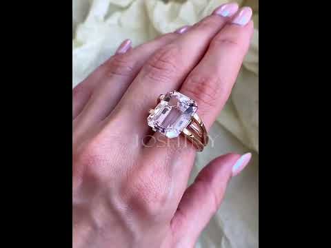 Simple Design 8 ctw Octagonal Cut White & Pink Gemstone Ring -JOSHINY
