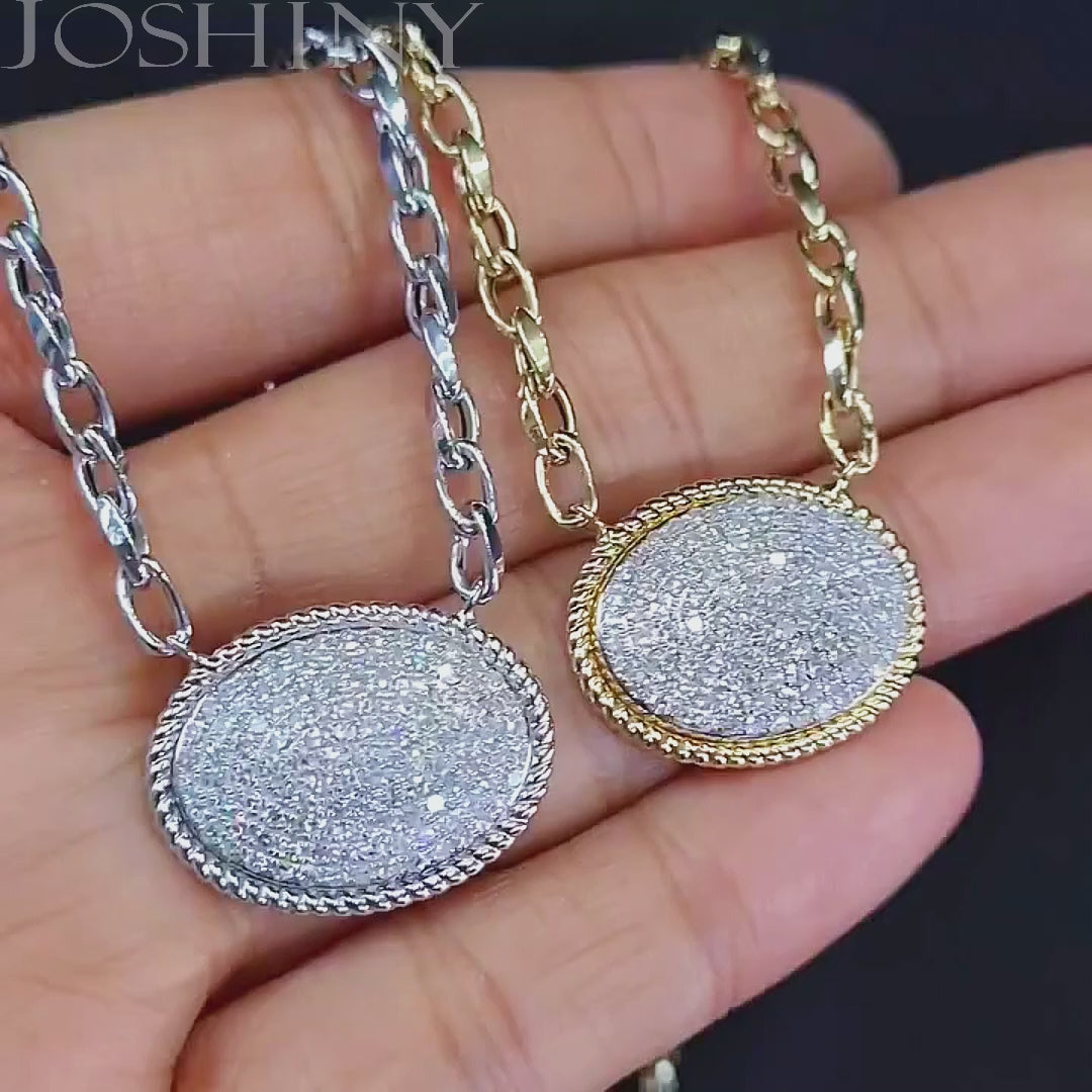 Stylish 1.5 ctw Round Cut White Gemstone Pavé Oval Necklace -JOSHINY