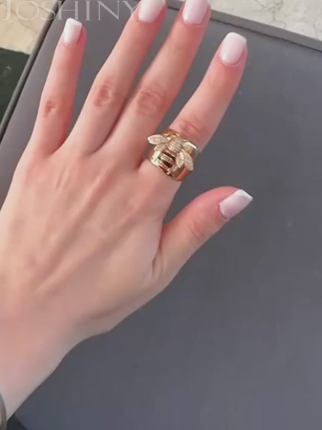 Stylish 1 ctw Round Cut White Gemstone Bee Ring -JOSHINY