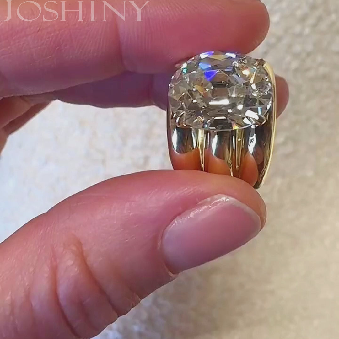 This is an engagement ring that makes a statement! Set with a huge sparkling oval cut white main stone in the center. The vintage gold band arm is exquisitely crafted and striking! The entire ring is comfortable to wear and is perfect for many occasions. Total weight is approximately 10 carats.The ring is made of 925 silver throughout, with thick gold plating, which makes the luster last longer compared to other single layer plating. The style is personalized and stylish, bringing more possibilities for your fashion collocation.