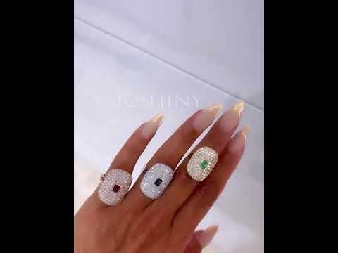 This is a great ring for many occasions. The design is stylish and elegant. The craftsmanship is exquisite and sparkling. The center features a brilliant octagonal cut main stone. It is surrounded by brilliant round cut white stones. Available in three stone colors (ruby with rose gold plating, sapphire with white gold plating and emerald with gold plating). Total weight is approximately 3 carats. The ring is made of 925 silver throughout, with thick gold plating, which makes the luster last longer compared to other single layer plating. The style is personalized and stylish, bringing more possibilities for your fashion collocation.