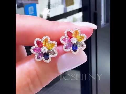 Stylish 3 ctw Marquise & Round Cut Rainbow Flower Stud Earrings -JOSHINY