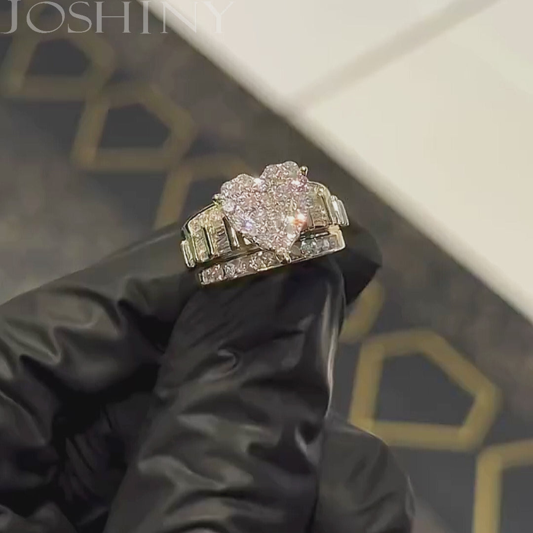This is a stylish and beautifully designed heart ring that makes a statement! Set with a combination of brilliant round and trapezoid cut white stones. The craftsmanship is exquisitely detailed and sparkling! Comfortable to wear and suitable for many occasions with it. Total weight is approximately 3 carats.The ring is made of 925 silver throughout, with thick gold plating, which makes the luster last longer compared to other single layer plating. The style is personalized and stylish, bringing more possibilities for your fashion collocation.