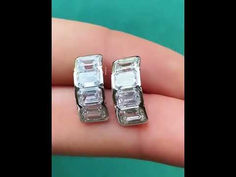 Stylish 8 ctw Emerald Cut White Gemstone Minimalist Design Earrings -JOSHINY