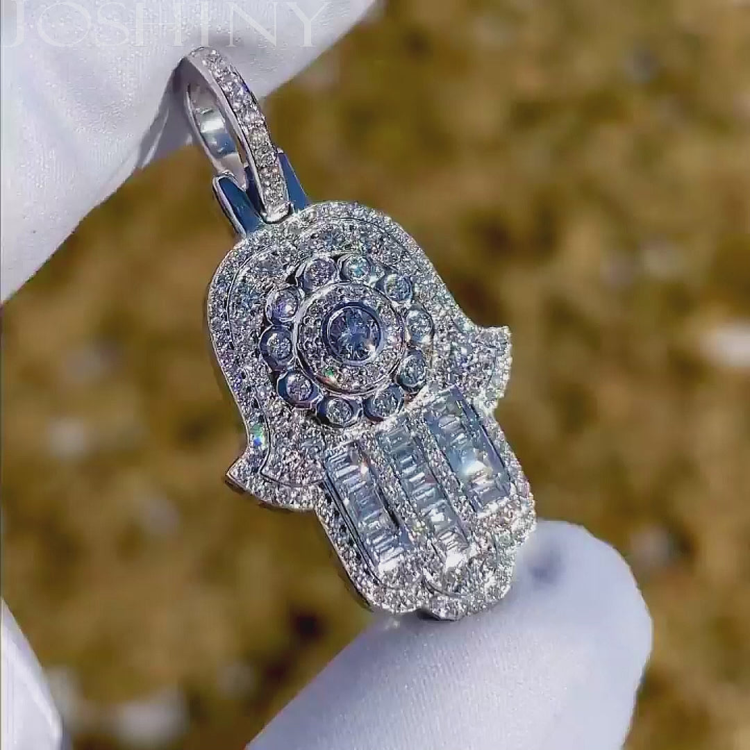 Unique 1.5 ctw Round & Baguette Cut White Gemstone Palm Eye Pendant -JOSHINY