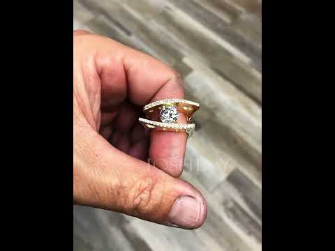 This sophisticated and stylish ring can be worn by both men and women. Featuring a round cut white gemstone setting. The two-piece ring arm is uniquely designed for comfortable wear. Total weight is approximately 1.5 carat. The ring is made of 925 silver throughout, with thick gold plating, which makes the luster last longer compared to other single layer plating. The style is personalized and simple, bringing more possibilities for your fashion collocation.
