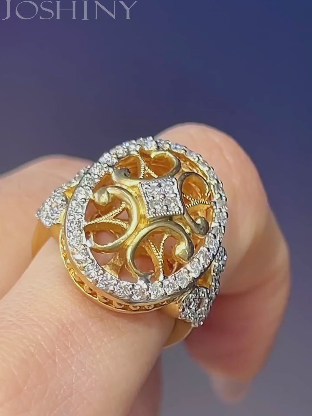 This is a stunning engagement ring! Set with brilliant round cut white stones. The unique openwork carving gives this ring an elegant and glamorous look. The craftsmanship is exquisite and delicate, making it suitable to wear with many occasions. Total weight is approximately 1 carats.The ring is made of 925 silver throughout, with thick gold plating, which makes the luster last longer compared to other single layer plating. The style is personalized and elegant, bringing more possibilities for your fashion collocation.