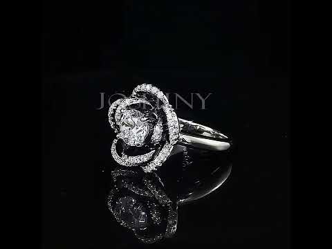 Unique 2 ctw Round Cut White Gemstone Black Camellia Ring -JOSHINY